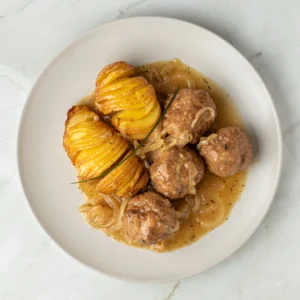 Albóndigas de carne en salsas de cebolla